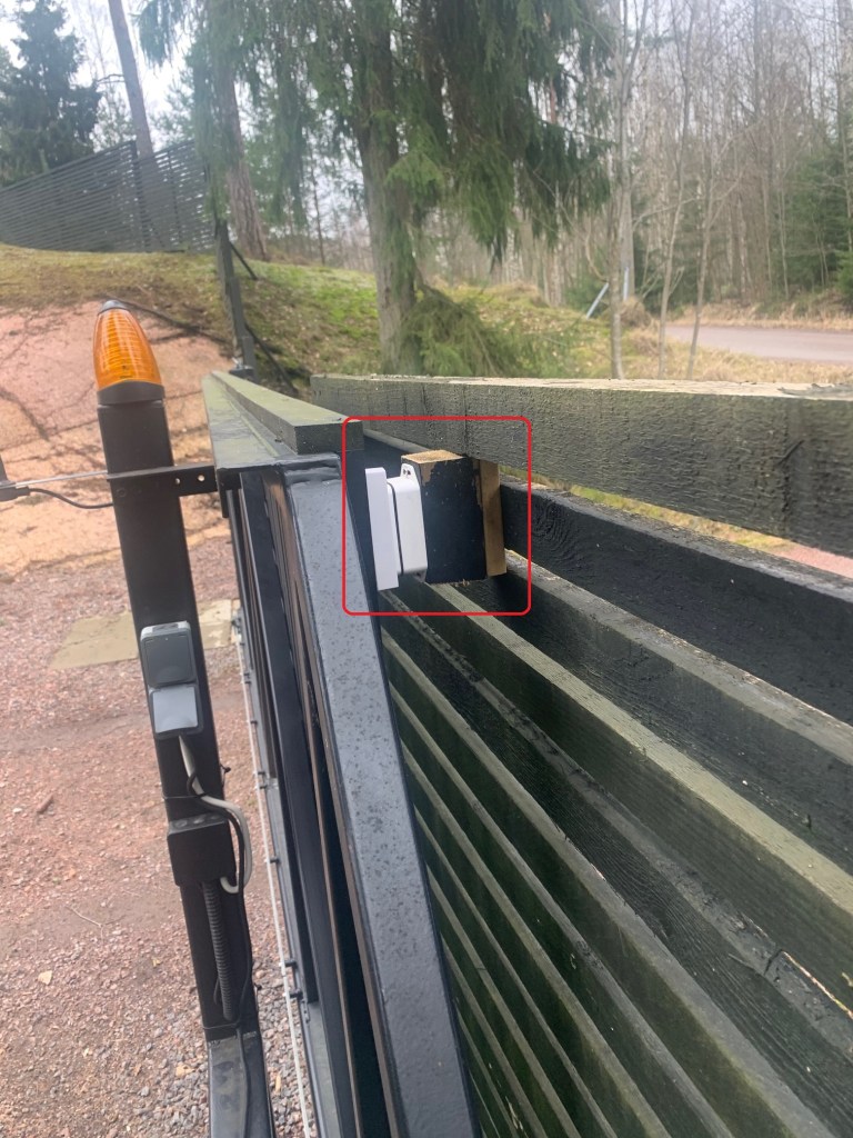 - Paksumpien aitojen tai muusta materiaalista tehtyjen (esim kivi) aitojen kanssa liikesensorin asentaminen aidan ja portin väliin voi olla hankalampi operaatio, kun portti on tiellä, eikä pääse ruuvaamaan sensoria kiinni aitaan.