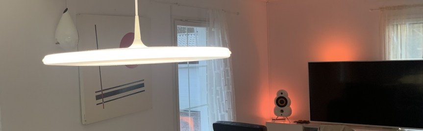 Ruokapöydän päälle oli hankittu uusi TIP 600 -valaisin ennen HUE-kuumeen alkamista. Koska valaisin on suhteellisen arvokas ja tuotti omaan silmään sopivaa valoa noin 4000K värilämpötilalla, ei ollut intoa tai tarvetta vaihtaa sitä HUE-yhteensopivaan valaisimeen.