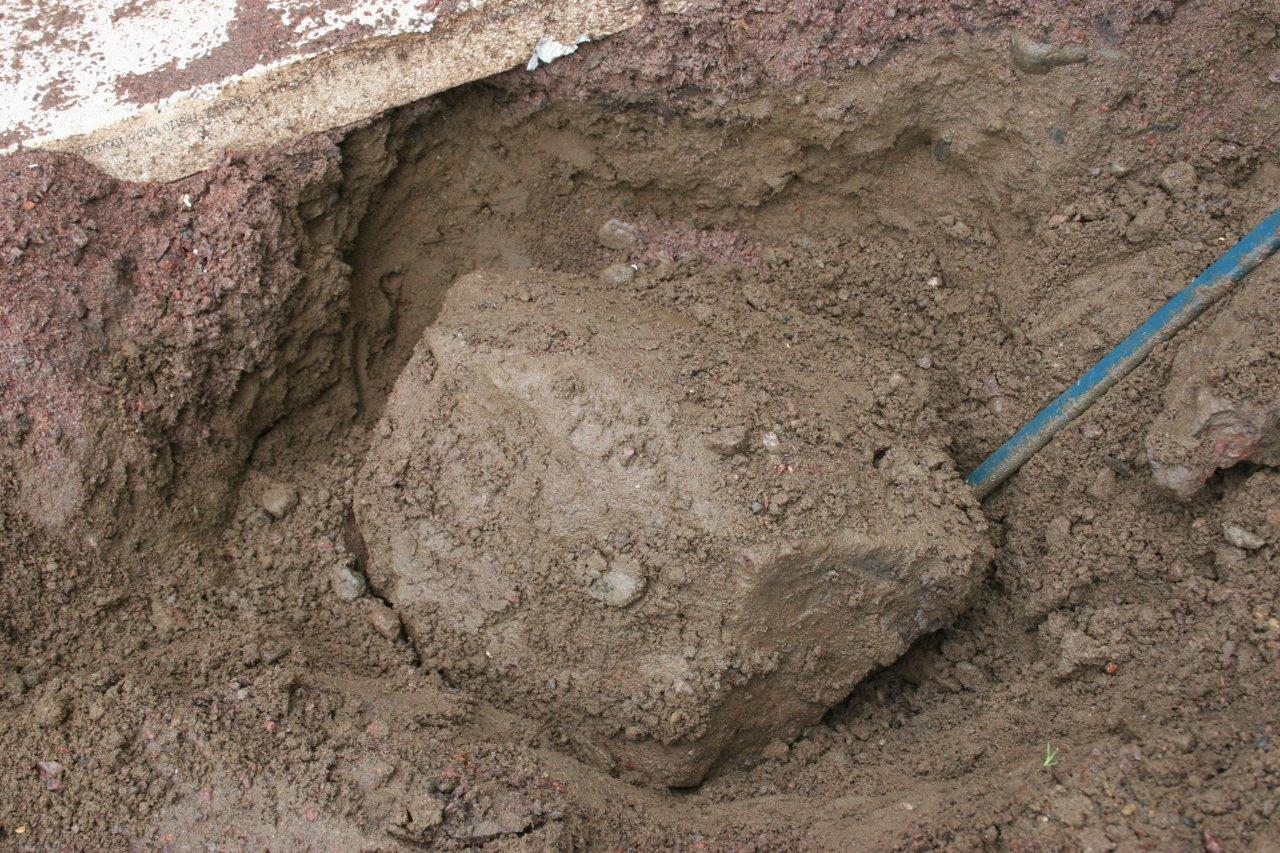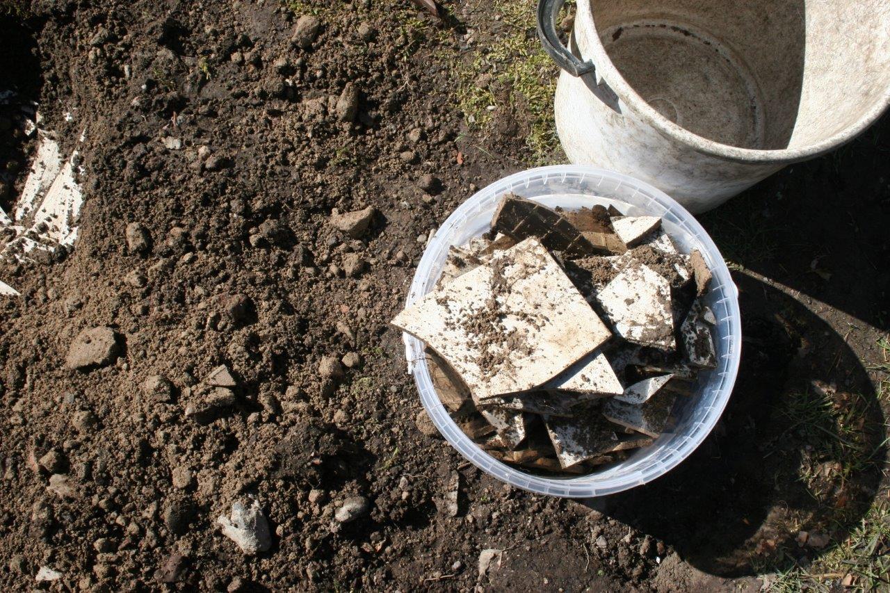 Joku edellisista asukkaista oli päättänyt haudata läjän kaakeleita puutarhaan, valitettavasti vähän huonoon paikkaan ja ne piti poistaa.