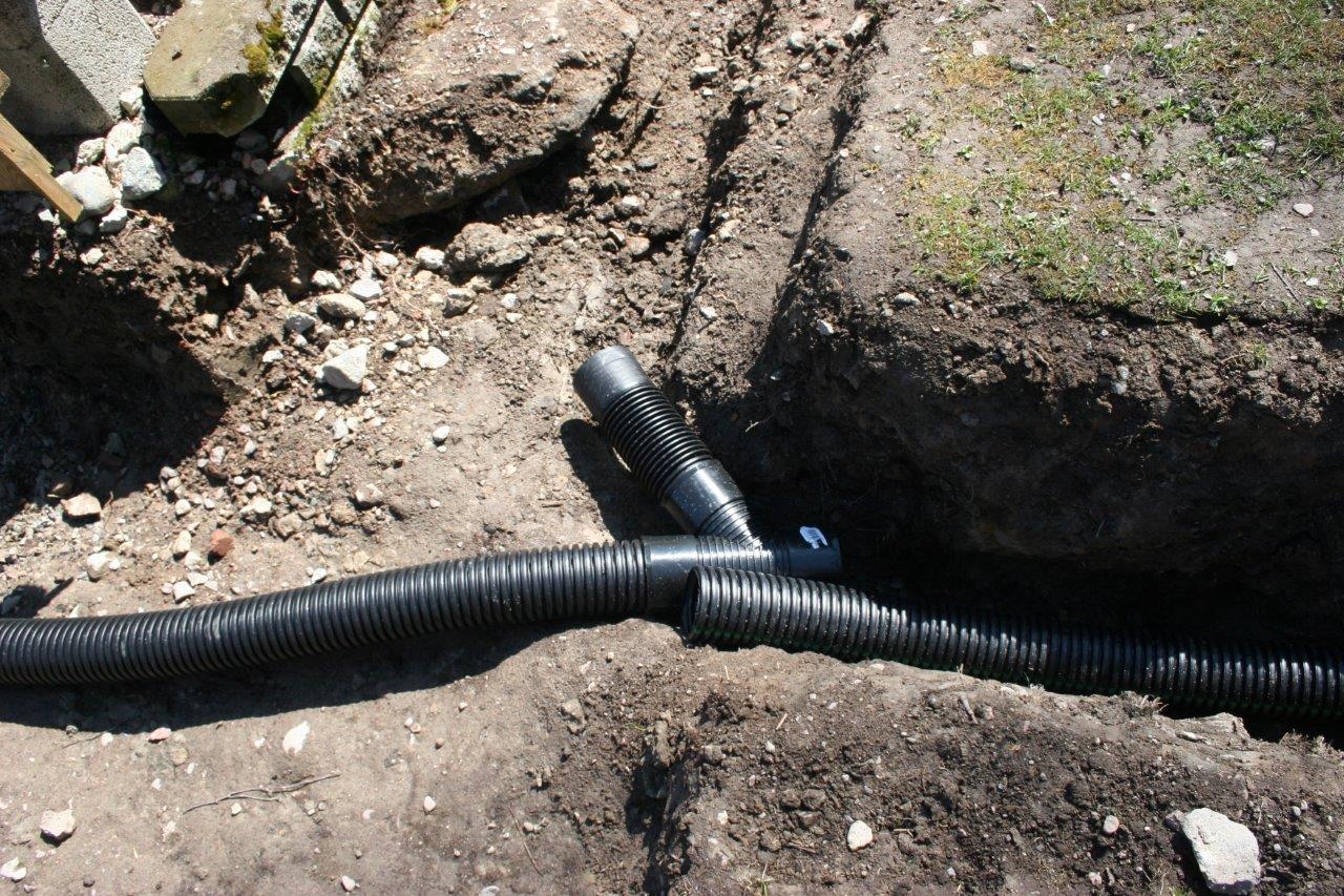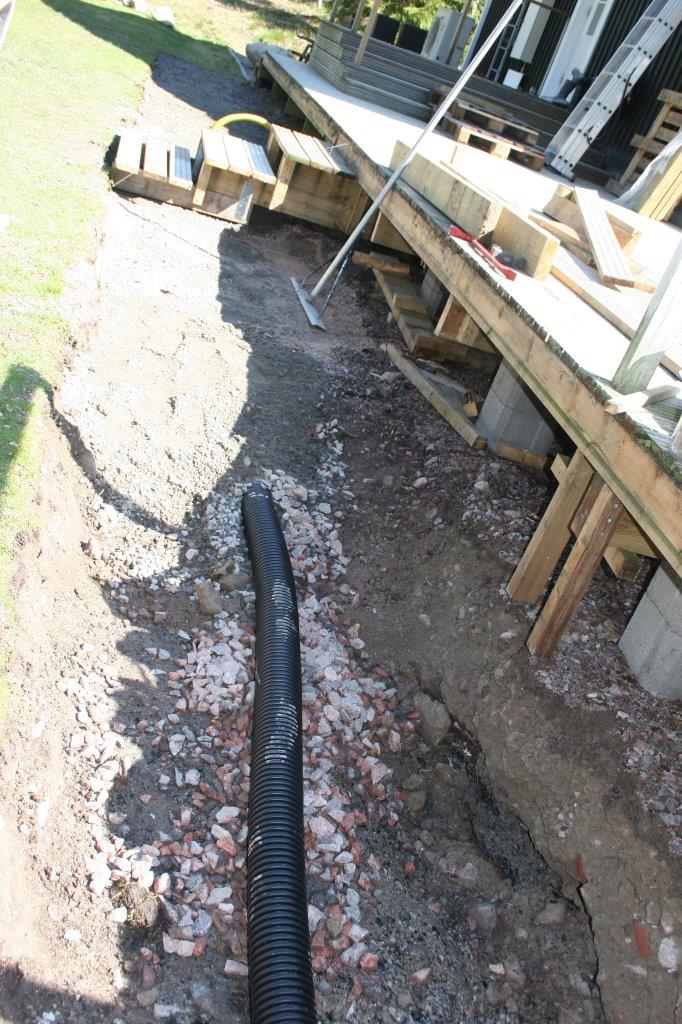 Samalla kun oli alettu kaivamaan maata auki, oli oiva tilaisuus tehdä sadevesikaivot autotalliin tulevaisuudessa tulevia sadevesirännejä varten.