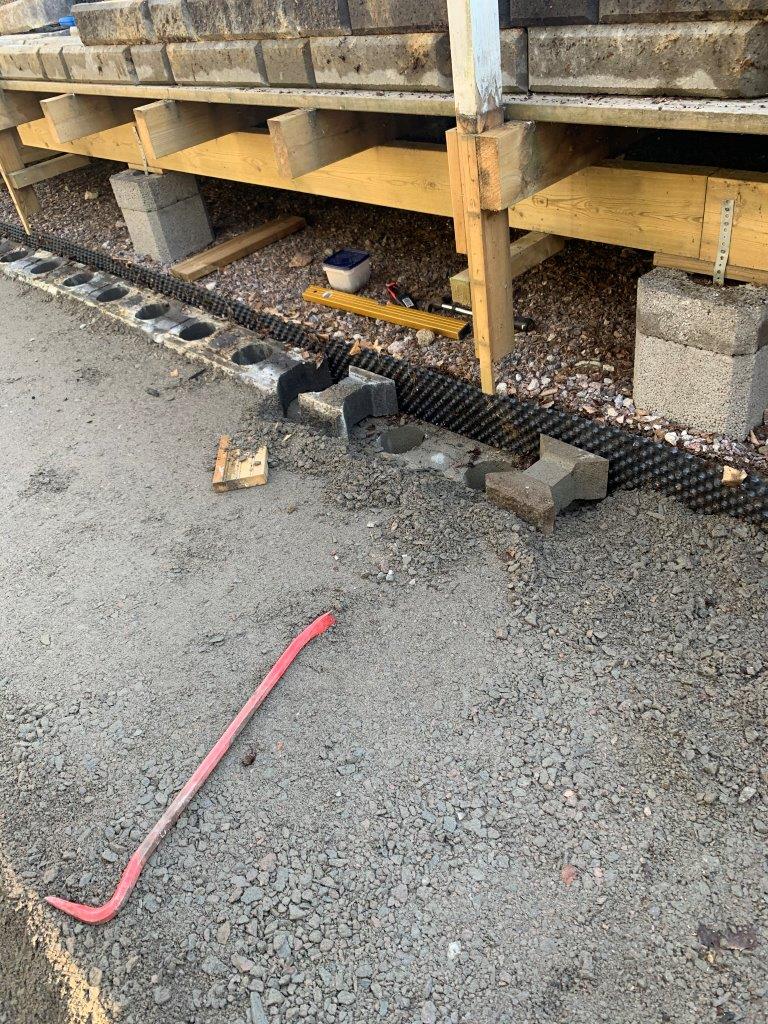 Istutuslaatikkojen perustuksien tekoa