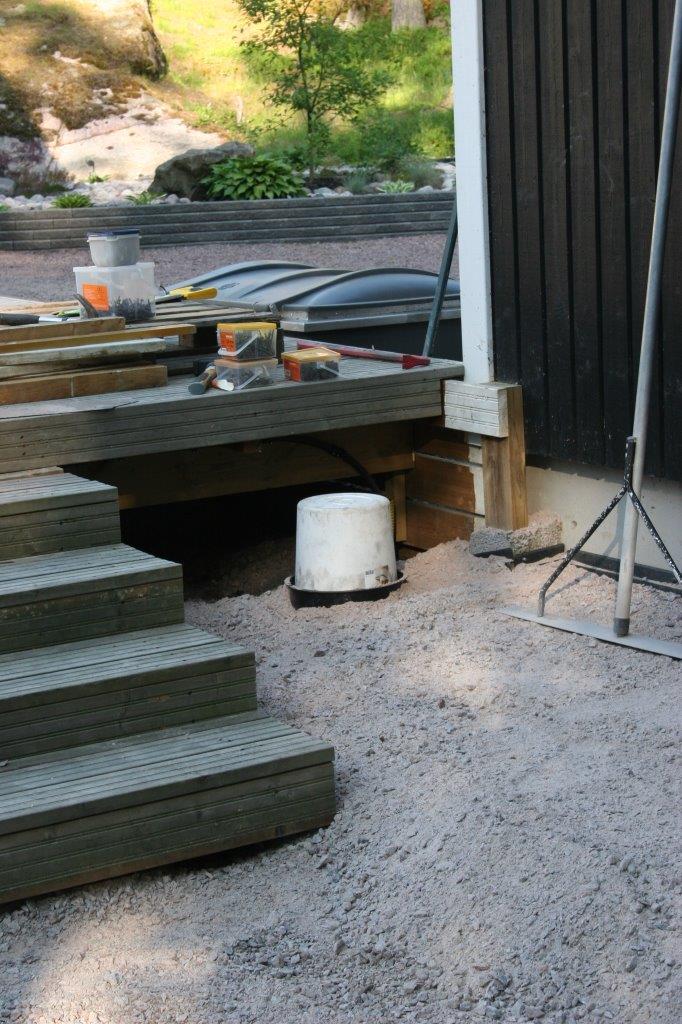 Pihalla on muutama ruma septikaivon kansi ja niiden peittämiseen mietittiin pitkään ratkaisua. Niitä ei voi kokonaan peittää, kun niitä tyhjennetään 3-4 kertaa vuodessa. Aiemmin ne oli peitettu puukansilla, mutta uuteen kovin ”kiviseen” lookkiin ei puu oikein istunut.