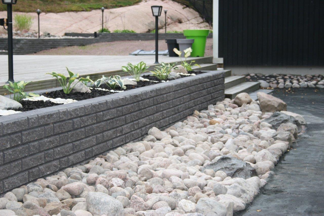 Istutuslaatikoiden rakentamista vallikivistä