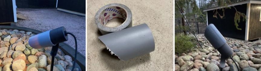 Koska Hue Lily -valaisin on putken muotoinen, niin etsitään putki, jonka sisähalkaisija on sopiva ja ujutetaan tämä Hue Lily -valaimen päälle?