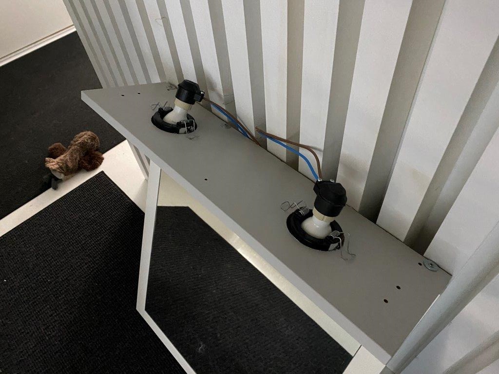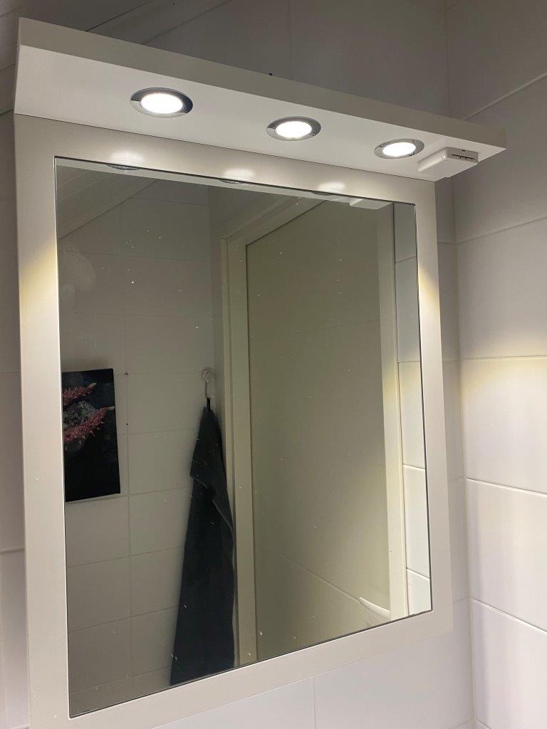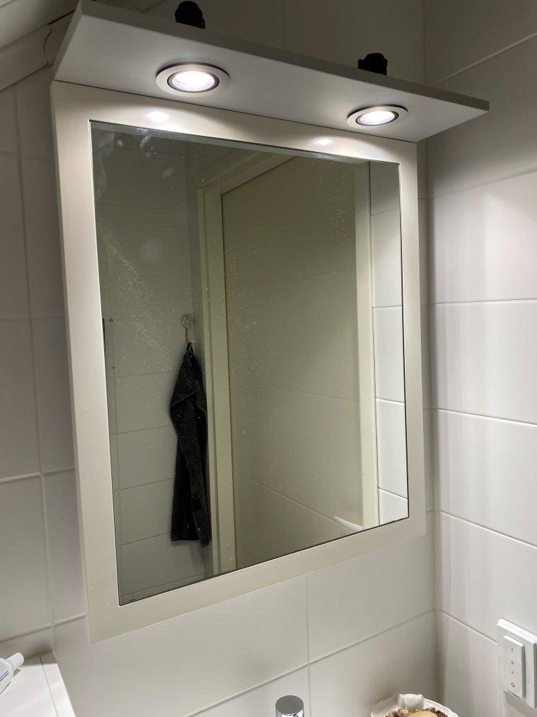 - Ilmeisesti asennustyöt jäivät edelliseltä asukkaalta peilin osalta kesken, kun valojen vieressä olevaa sähkötöpseliä ei ole kytketty mihinkään