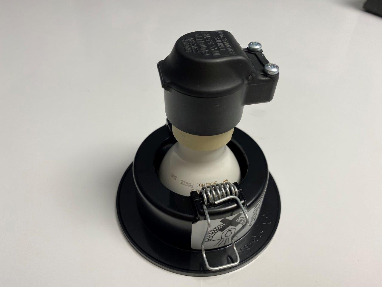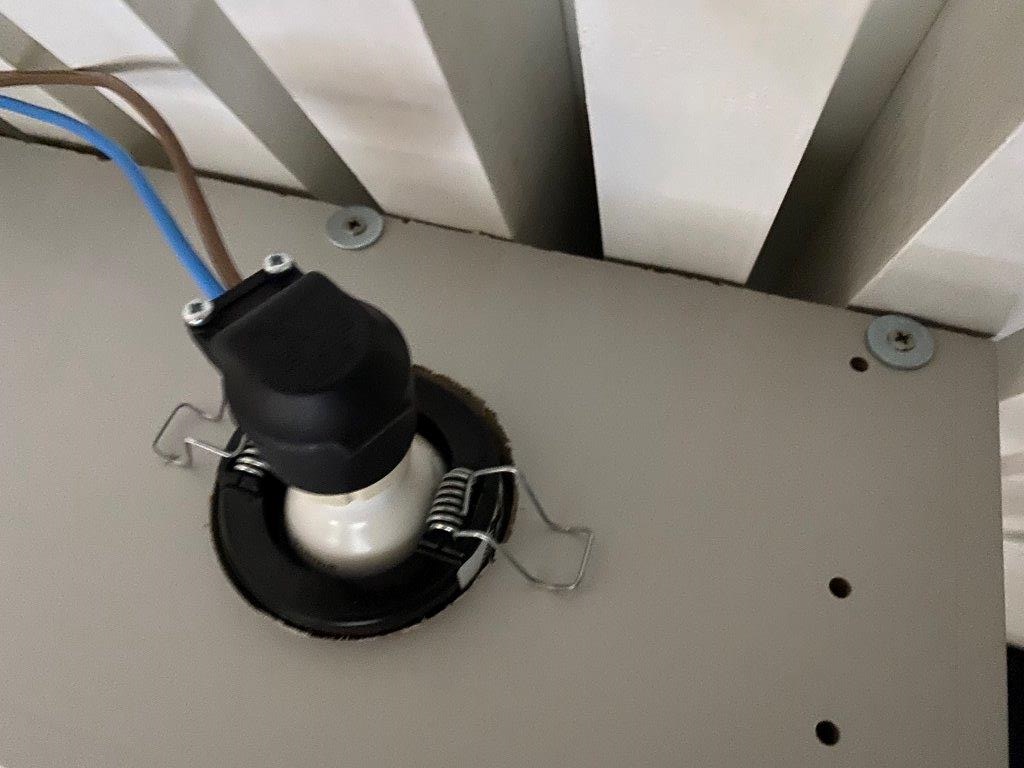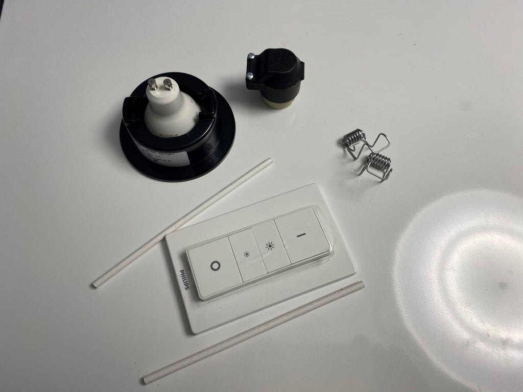 - Poistetaan kiinnitykseen käytetty levy ja vaihdetaan tilalle uusi levy, johon upotetaan 2 kpl Philips Hue Milliskin alasvaloja