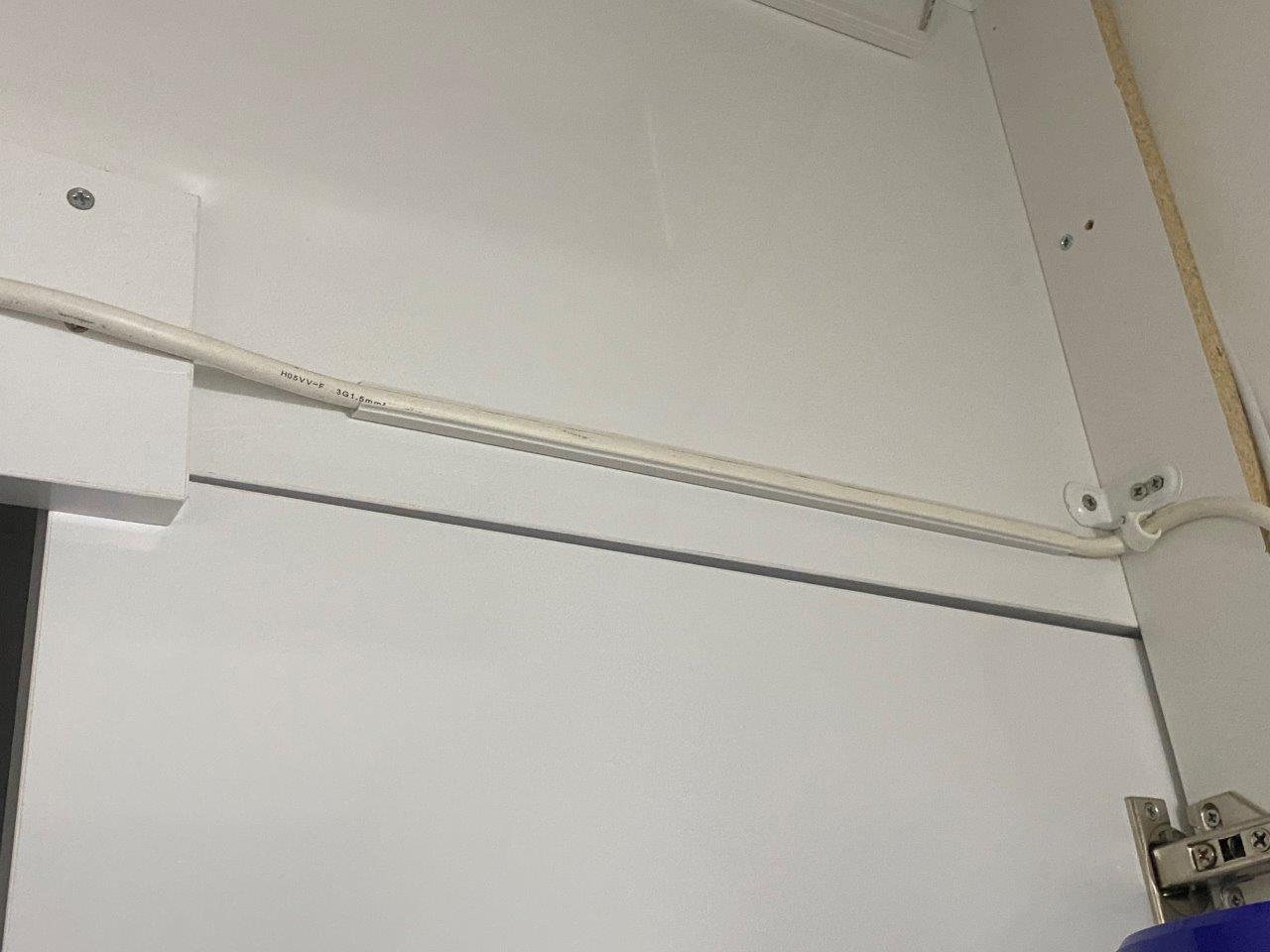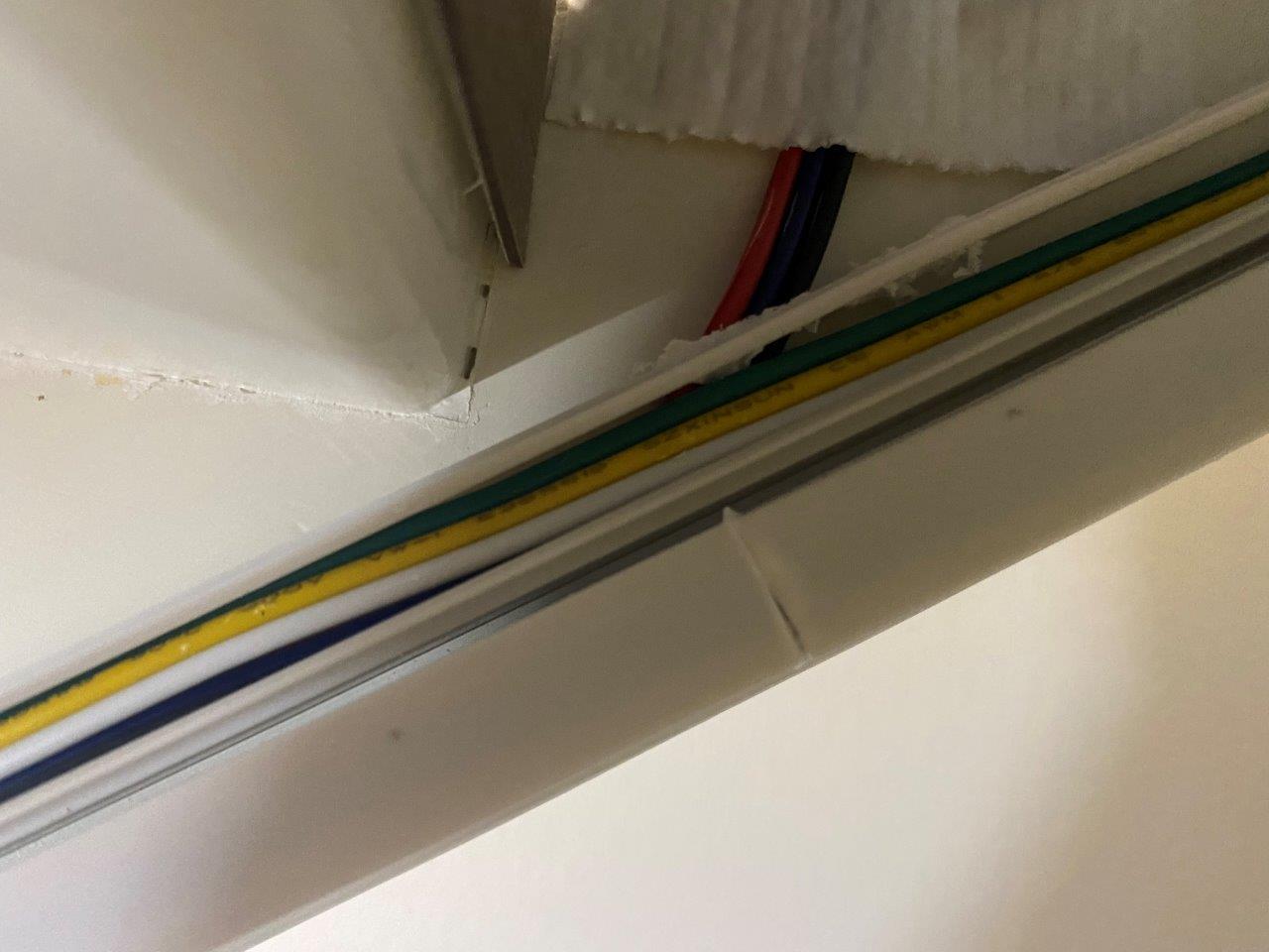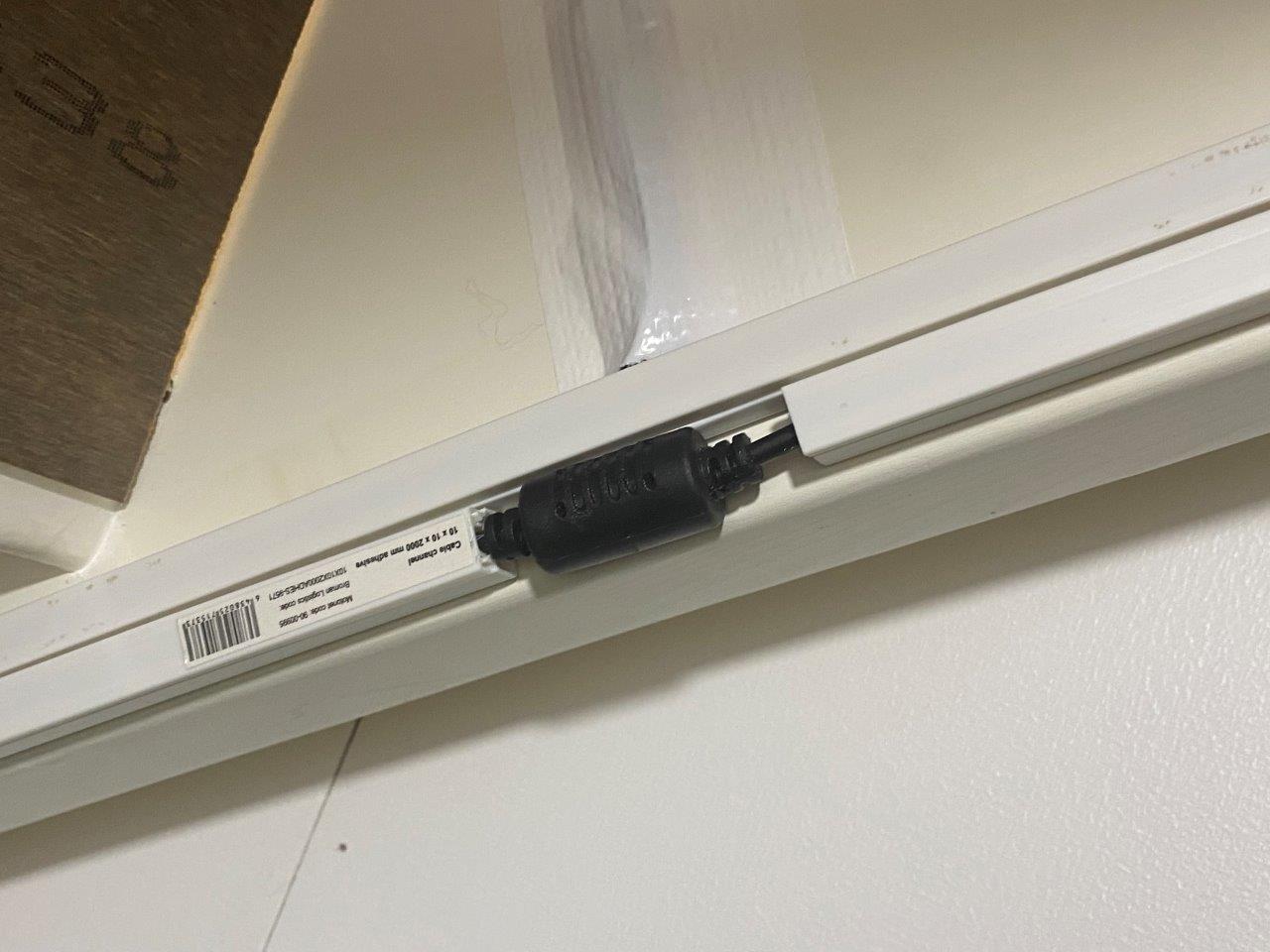 3. Asennuskanavien / johtokourujen liimaaminen paikalleen. Kannattaa laittaa mahdollisimman suojaisaan paikkaan, ettei töni vahingossa piuhoja irti