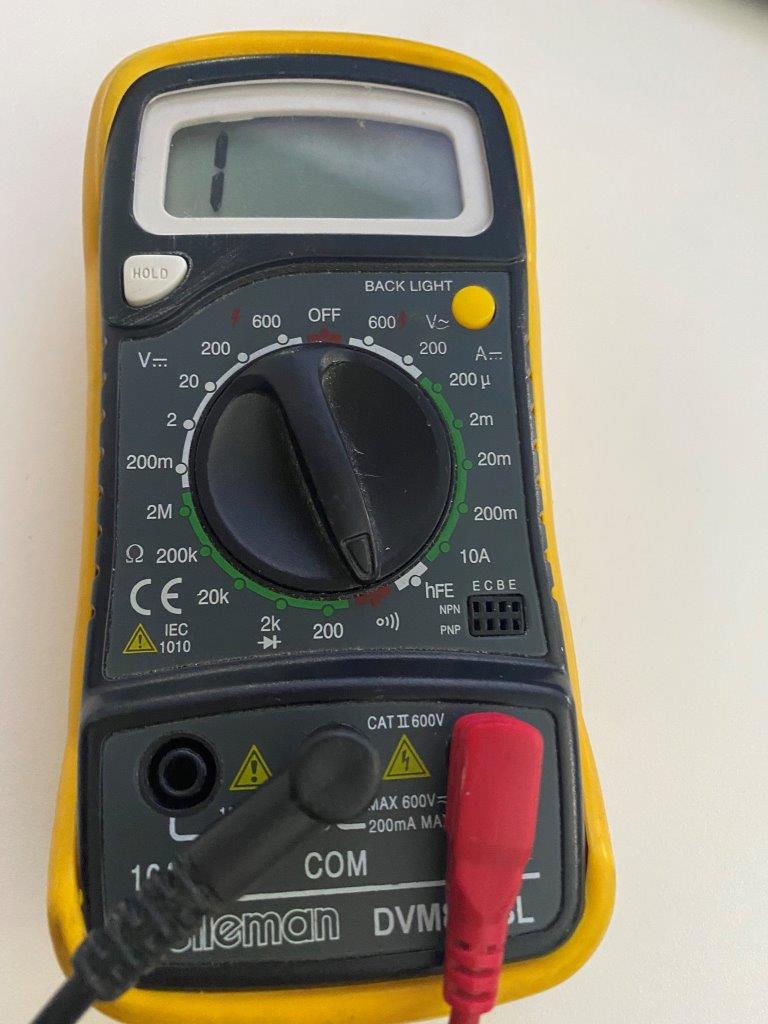 9. Jos käytössä on ”piipparilla” varustettu yleismittari, niin sillä voi testata, että virta kulkee piuhassa liittimien välillä. Tökkää mittarin ”piikit” saman värisen piuhan liittimessä olevaan reikään. Jos kuuluu piippaus, niin homma ok. Jos ei, niin jotain on pielessä
