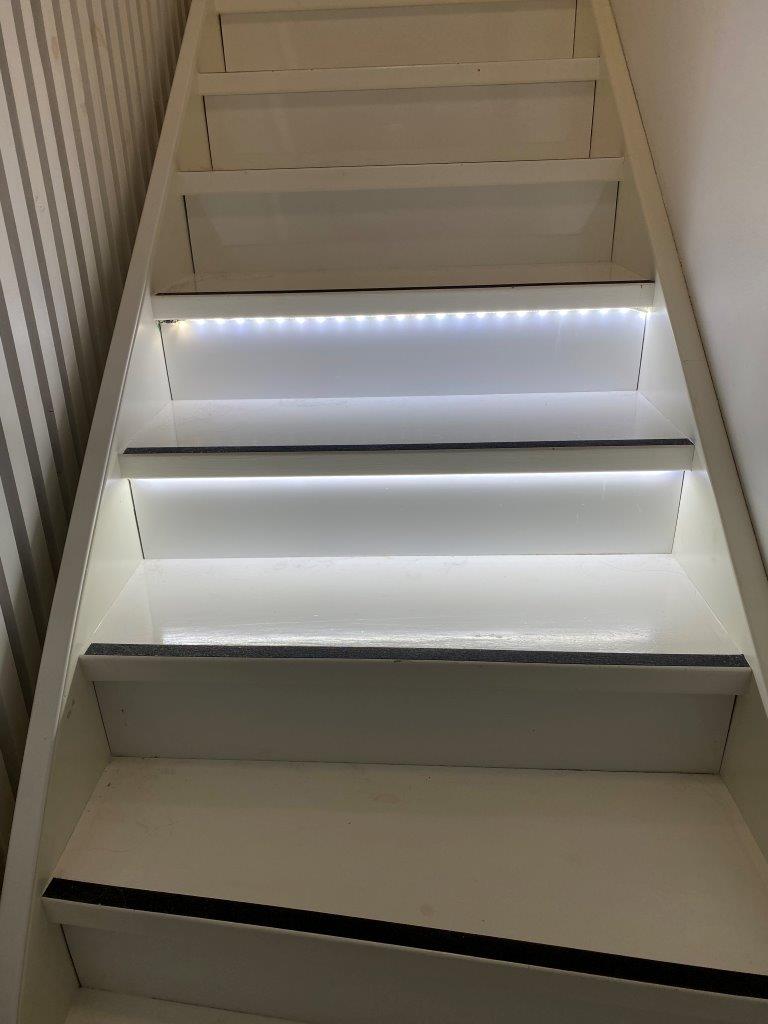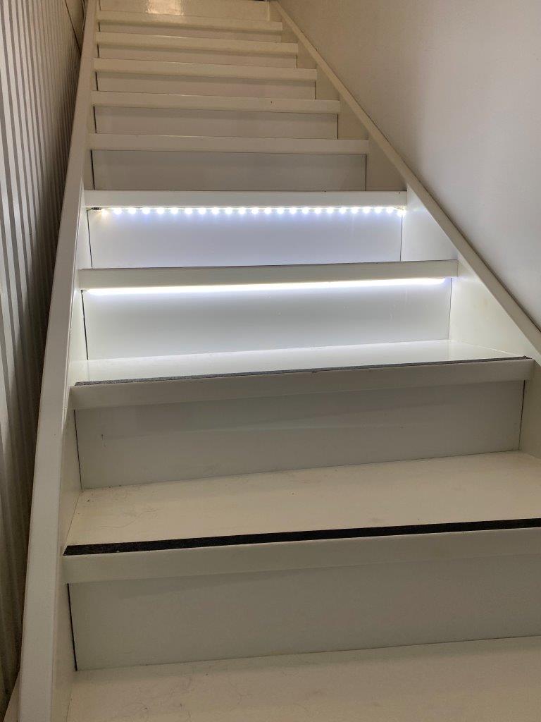 • Valitettavasti näin asennettuna ylimpien portaiden led-nauhat paistoivat hieman silmään