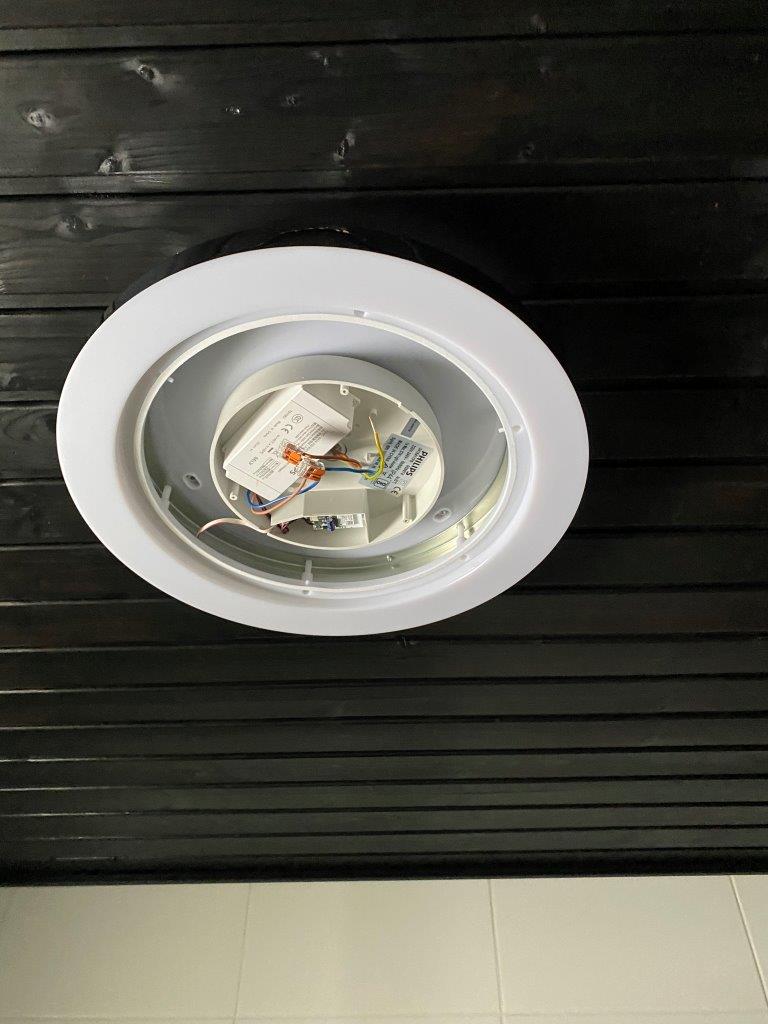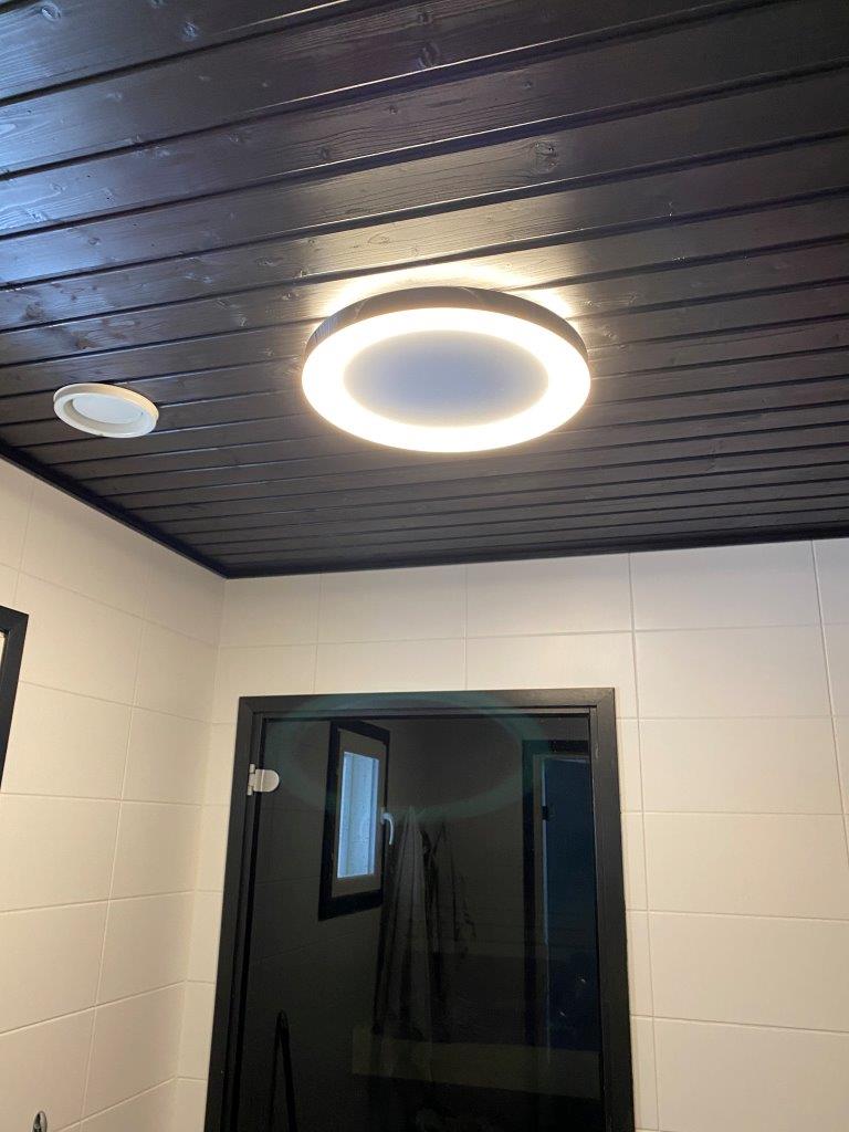 Talon viimeinenkin tila saa älyvalot. Tällä kertaa laitetaan suihkuhuoneen ja saunan valaistus uusiksi. Suihkutilaan menee Philips Hue Adore kattovalaisin ja saunan lauteiden alla olevaan valaisimeen vaihdetaan Hue E27 white ambiance polttimo.