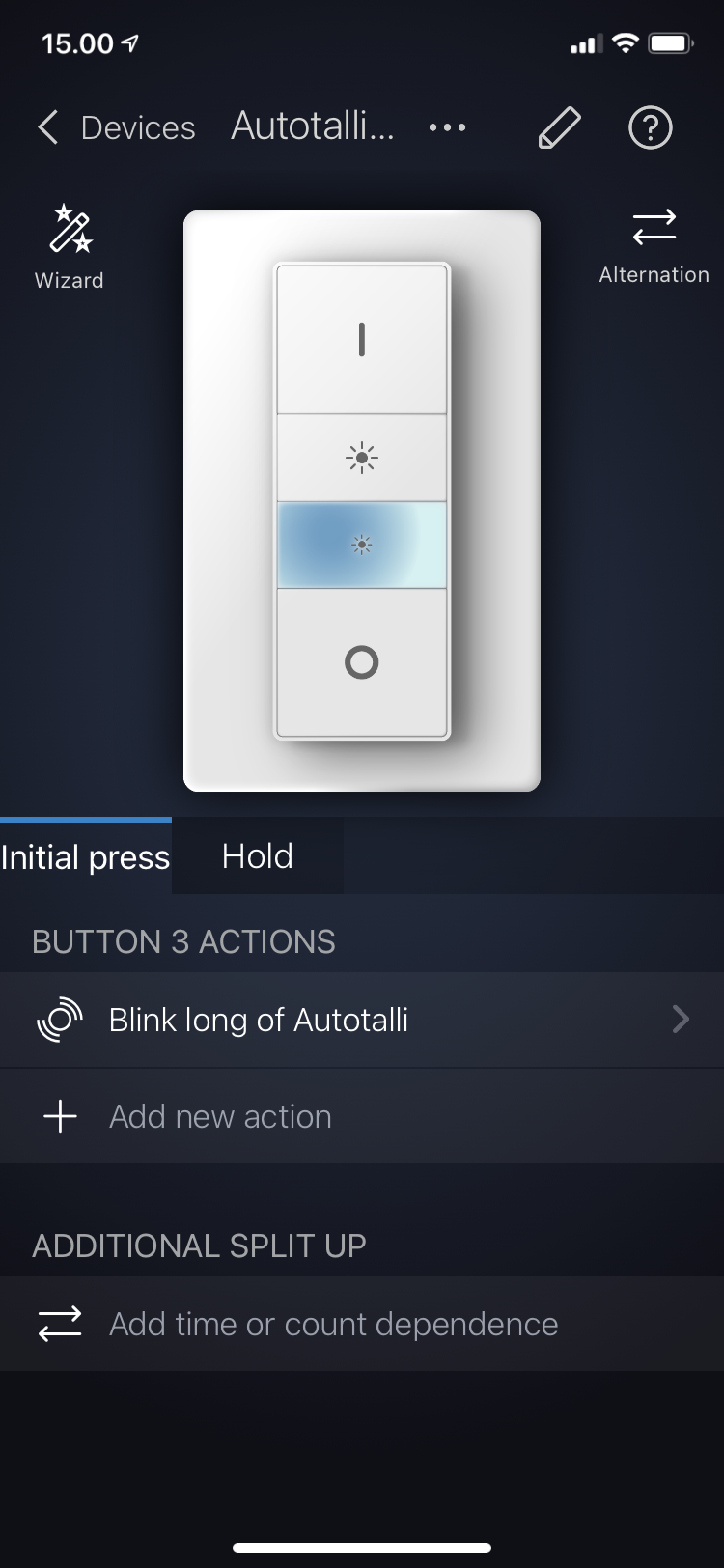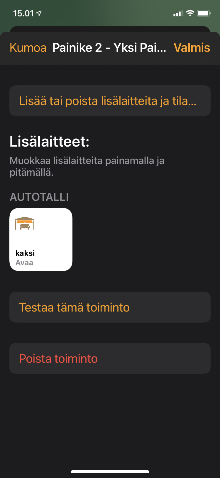 Jouduin resetoimaan autotallin iSmartgaten ja tässä yhteydessä piti rakentaa tämä automaatio uudestaan. Ei riittänyt, että laittoi uusiksi Homekit osuuden. Jotta homman sai toimimaan piti ensin iConnectHue applikaatiosta poistaa kaikki nappeihin tehdyt määritykset ja sen jälkeen tehdä Homekitissä nappien määritykset ja taas palata tekemään iConnectHue applikaatioon asetukset.