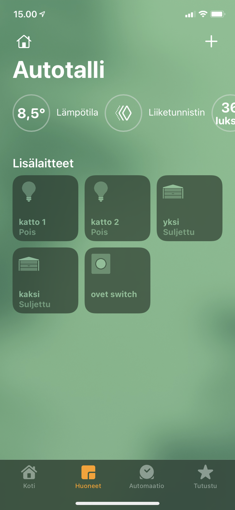 iSmartgaten osalta ei tarvinnut tehdä mitään uusia asetuksia koska laite oli jo aiemmin liitetty Apple Homekit -ympäristöön.