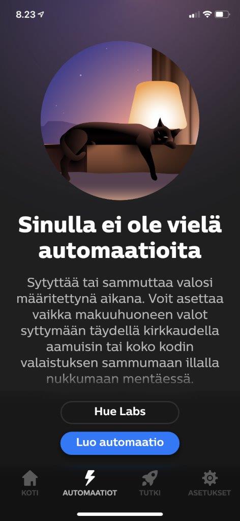 iConnectHue päivitystä odotellessa päätin testata uusia ajastuksia natiivi Hue applikaatiolla.
