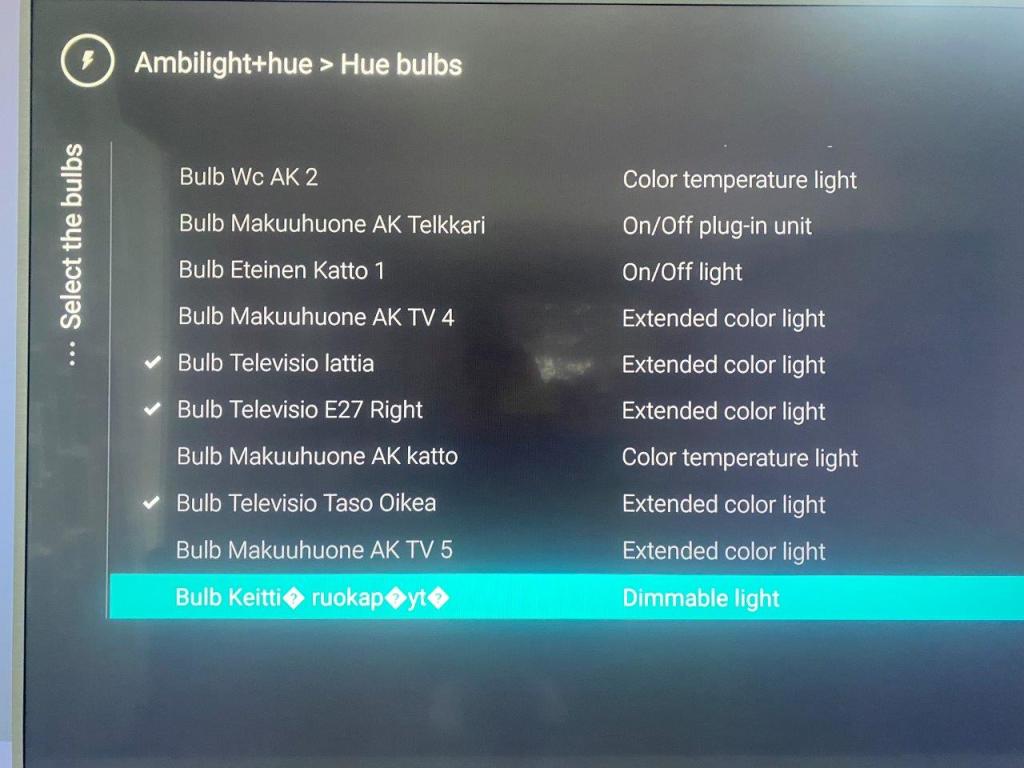 - Television konfiguraatiossa ei näy kaikki Hue valaisimet
