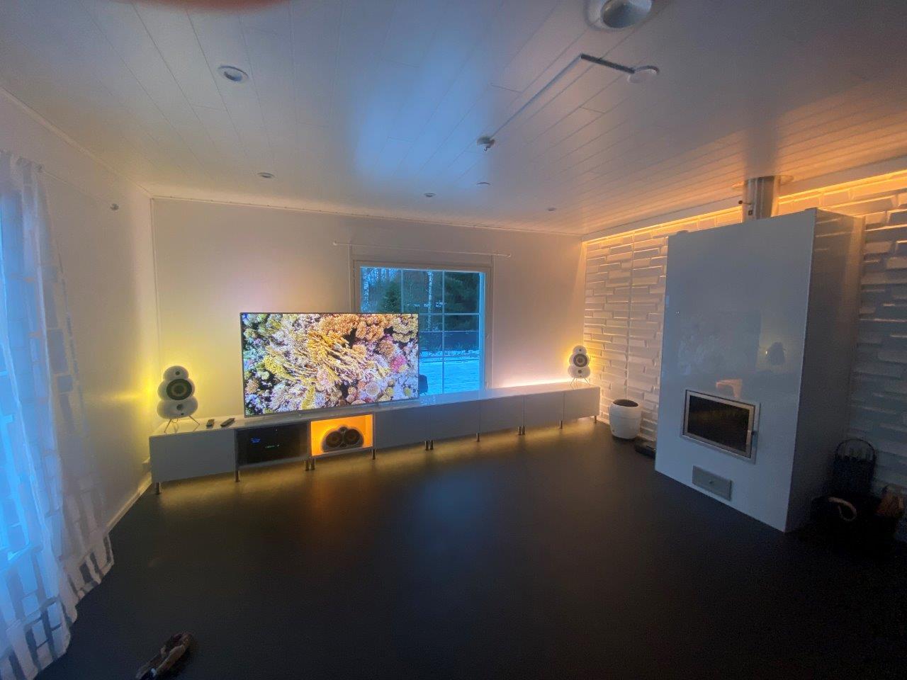 Lattiaremontin valmistuttua oli aika virittää olohuoneen Philips Ambilight TV takaisin käyttöön. Samassa yhteydessä päivitin television ympäristön valaistusta lisäämällä setuppiin muutaman Philips Hue Gradient Lightstripin.