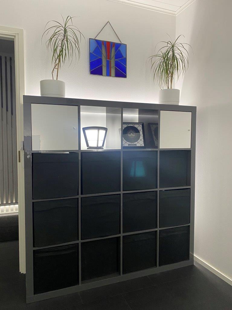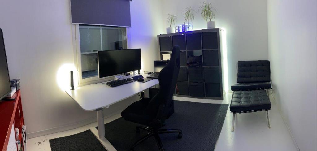 Järjesteltyäni työhuoneen kalustusta uusiksi päätyi hylly led-nauhoineen vastakkaiselle seinälle kuin työpöytä. Tämän jälkeen Teams-sessioissa alkoi Lidlin led-nauhan kirkkaus häiritsemään, tietokoneen web-kameran erottelukyky ei riittänyt ja kameraan taustalla näkyvä led-nauhan valaisema seinä ikään kuin ”paloi puhki”.