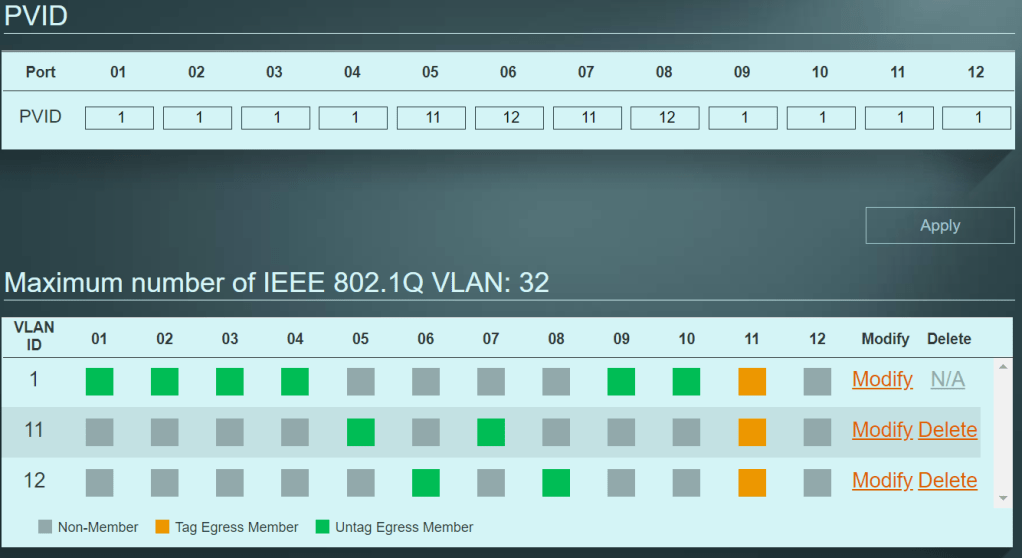 Kuva: Yläkerran XGS1250-12 Vlanit