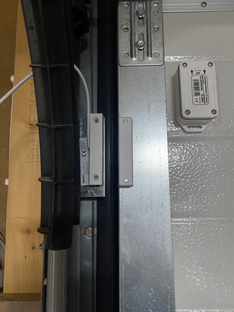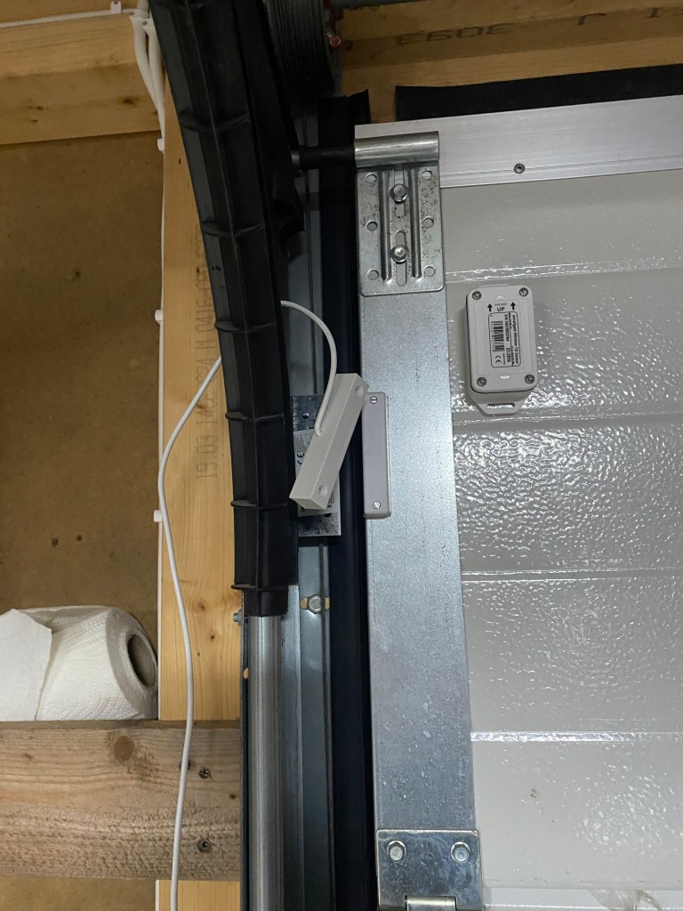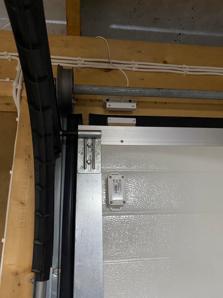 - Itsellä langaton kallistussensori on kiinnitettynä autotallin oven yläreunaan ja johtuen oven mekanismista jää oven ylin paneeli välillä hieman ”irvistämään”, jolloin myös sensori jää joitain asteita vinoon