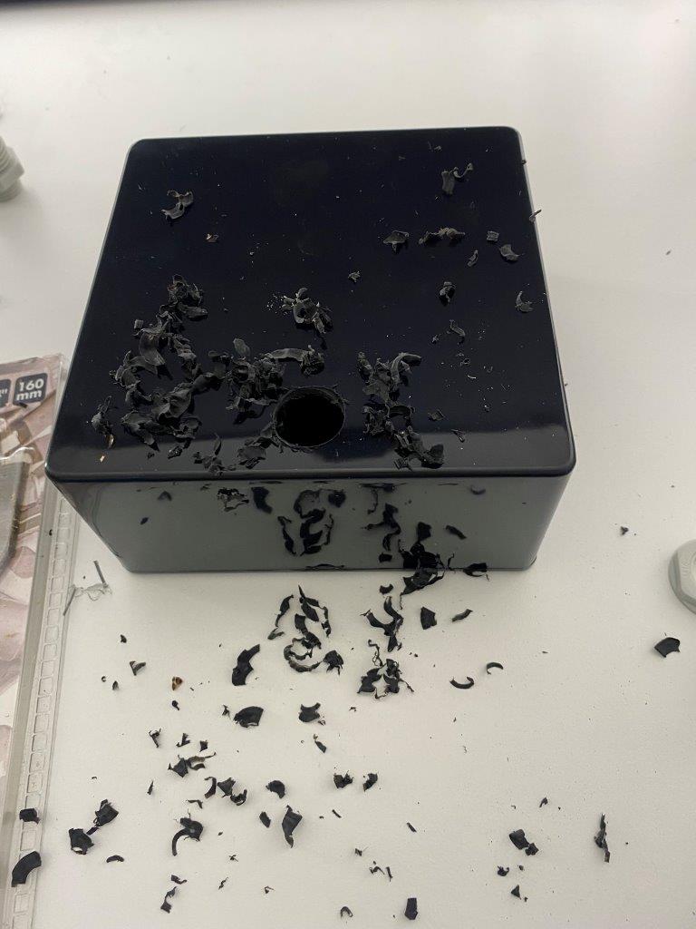 - Lisäksi täältä löytyi kotelon väriin sopivia mustia kaapelinläpivientejä